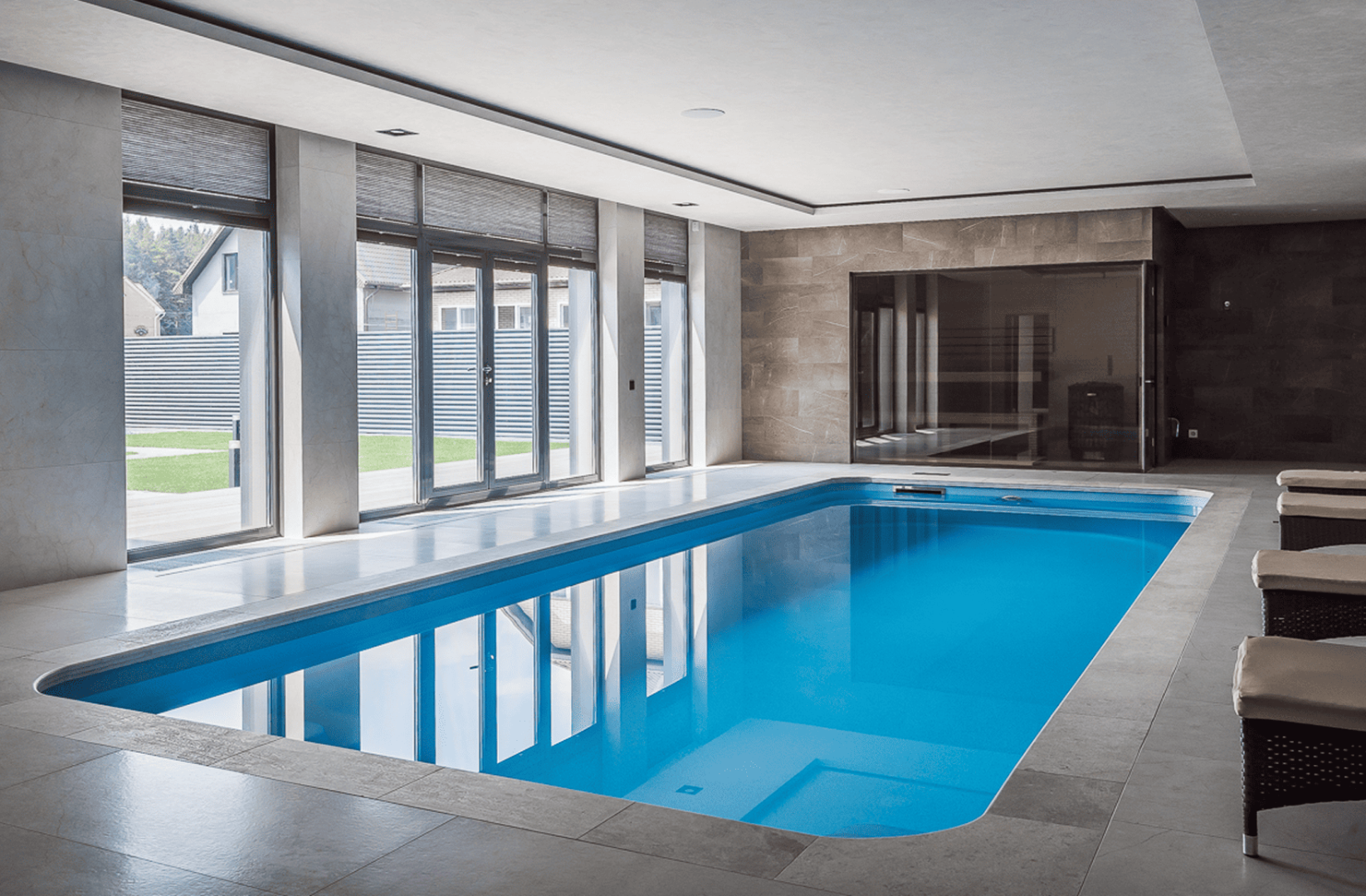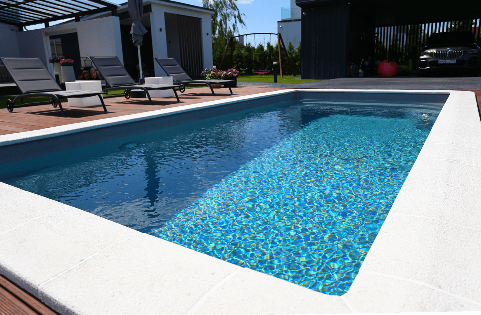 «Рица» - цвет покрытия схож с оттенками знаменитого озера Рица. Отличается особенной глубиной и тысячами переливами синего. Бассейн станет объектом притяжения не только для плавания, но и для созерцания!
